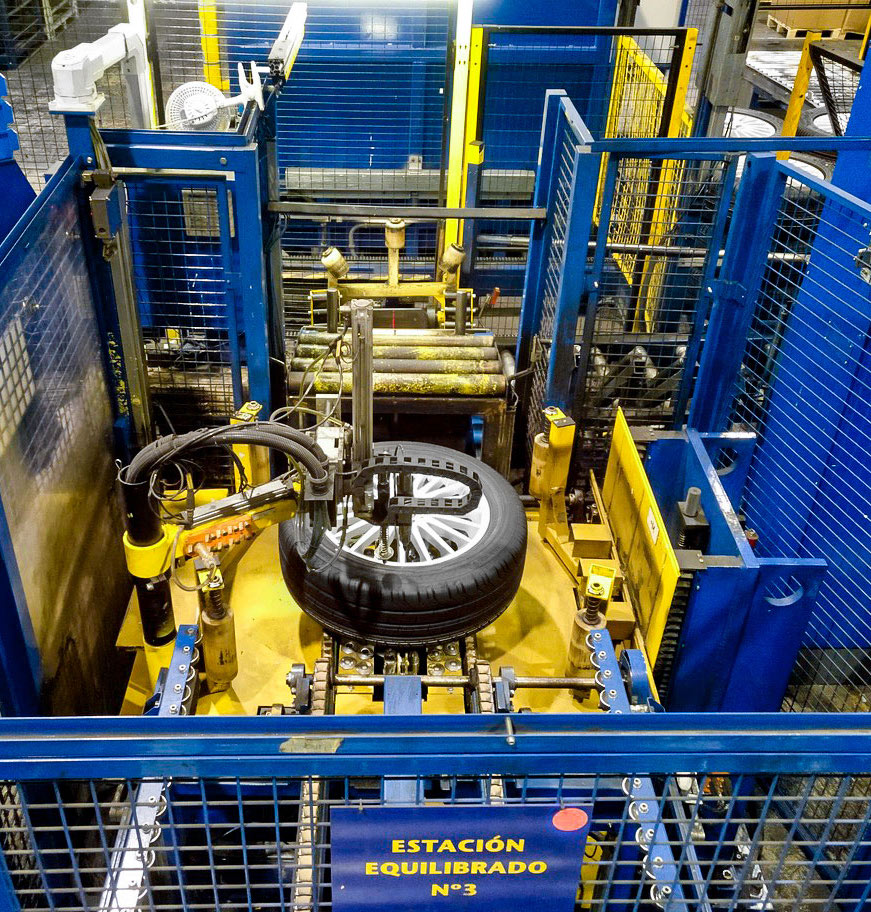 Nuestro proceso incluye descarga y almacenamiento de neumáticos, llantas y producción de conjuntos neumáticos-llantas con válvulas TPMS.